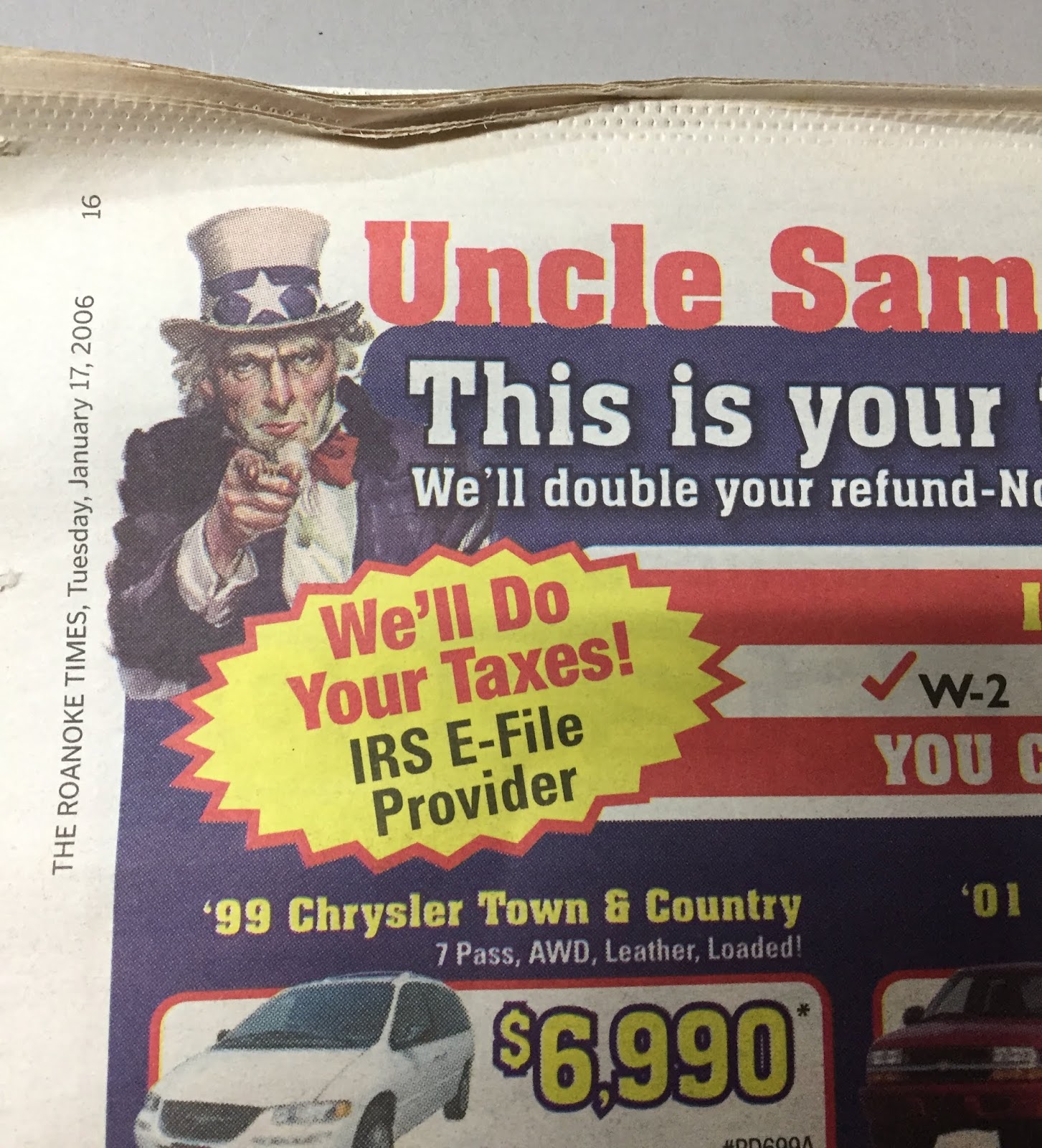 Now, it's no secret, I'm going to start on the trail near Tax Day 2020. Since I've been writing that, Tax Day and clearing out my Time Capsule of Life called "Schitt" but it still is my stuff, this old paper insert caught my eye.